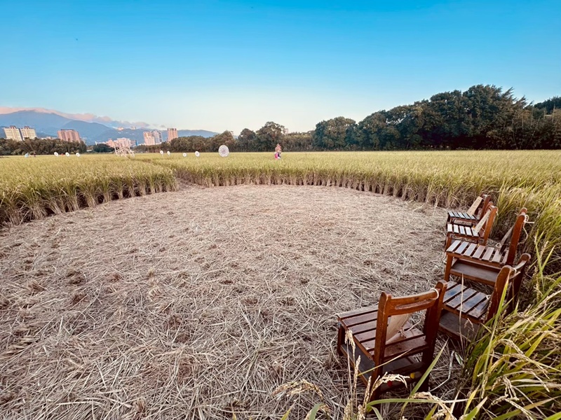 紫色苦楝花 紅色桑椹果 金黃色稻穗