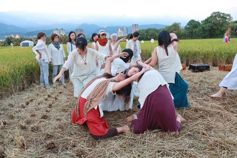 洲美農業區的稻浪舞台上,身聲賦現代舞的演出,為2025五分港溪秋之大地藝術祭正式揭開序幕。