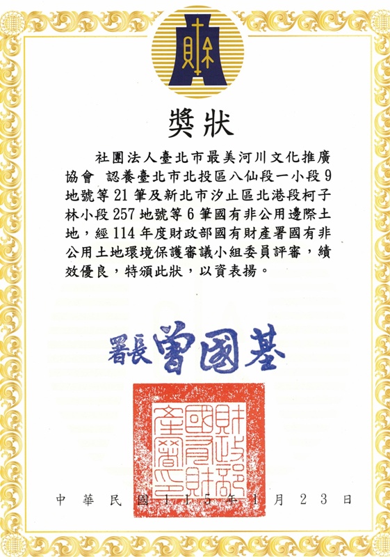 之前從參與活動民眾的臉上看到笑容,代表了對五分港溪的喜愛,對美川協會行動的認同;今天從國產署署長手中接到奬狀,代表了對認養單位績效的肯定,對美川協會理念的信任。