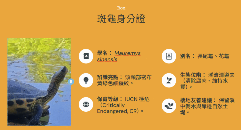 當我們願意放慢腳步,走近溪流,會發現斑龜這般微小而堅韌的生命,正以自己的節奏,靜靜與季節同行。而我們每一次的觀察與記錄,不只是留影,也都是對這片土地最溫柔的回應。