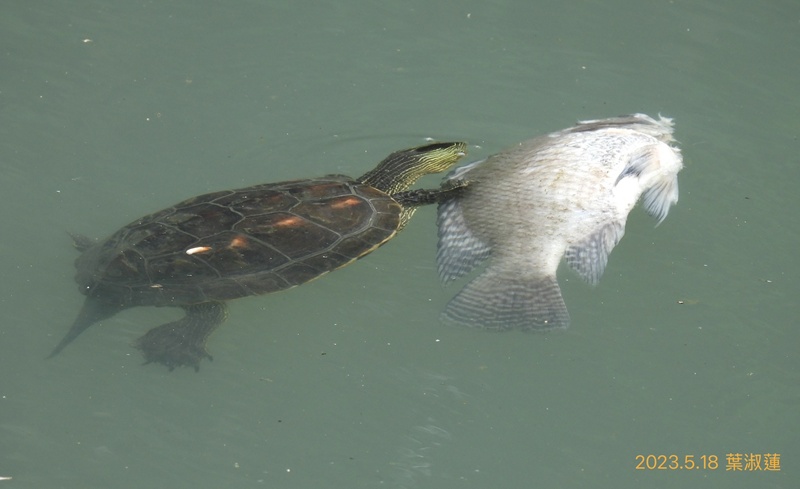★ 食性多樣:維持生態平衡的推手 在生態鏈中,斑龜扮演著重要的「清除者」角色。牠們是雜食性動物,攝食魚、蝦、昆蟲、水中植物…等。幼龜偏肉食,成龜偏草食。牠們默默幫我們提供生態服務,會取食腐肉及動物死屍,是維持水域生態平衡的重要一員。
